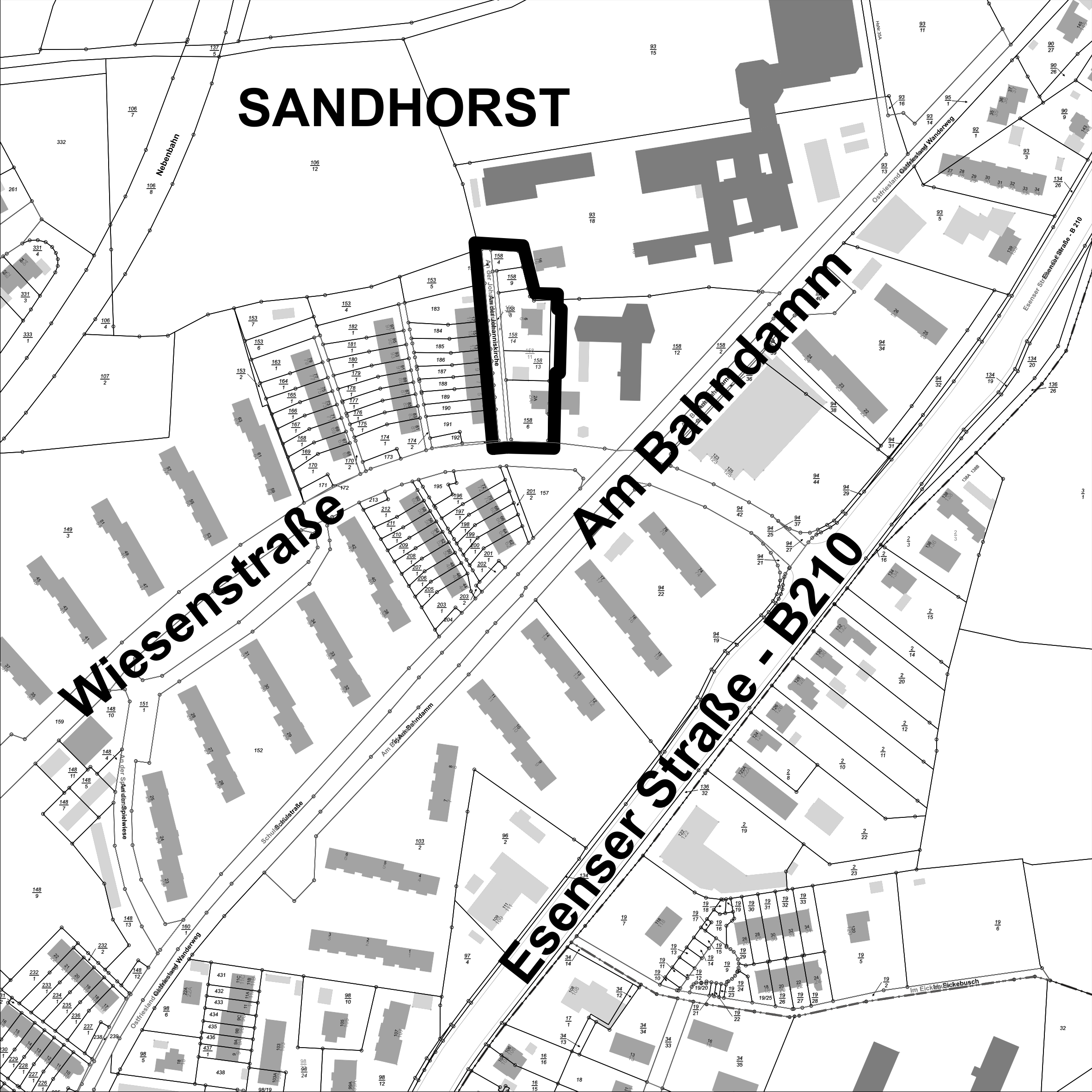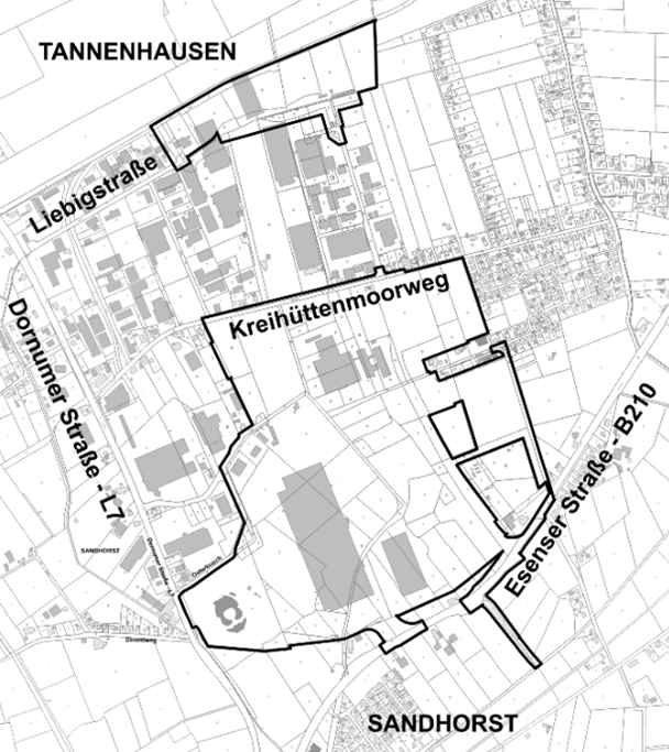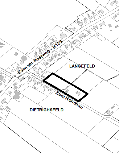 Der Geltungsbereich des Bebauungsplans Nr. 399 „Langefeld / Nördlich Hohehan“ ist in dem nachfolgenden Kartenausschnitt, der Bestandteil der Bekanntmachung ist, schwarz umrandet dargestellt.
