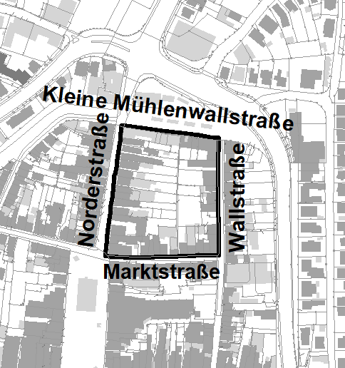 Der Geltungsbereich der 1. Änderung des Bebauungsplans Nr. 173 „Südlich Kleine Mühlenwallstraße“ ist in dem nachfolgenden Kartenausschnitt, der Bestandteil der Bekanntmachung ist, schwarz umrandet dargestellt.